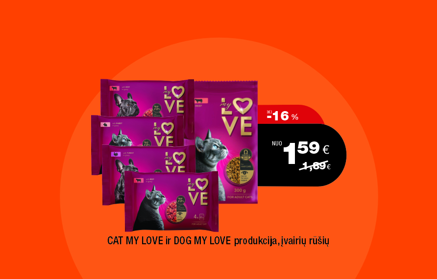 Platus šunų ir kačių maisto asortimentas mūsų parduotuvėse.
